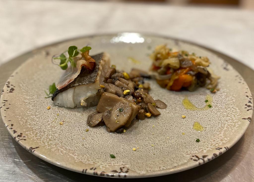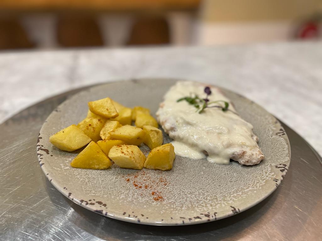 Patata asada, zanahoria, pepinillo en agridulce, pimiento de piquillo confitado, lomo de atún, mayonesa y pan carasu