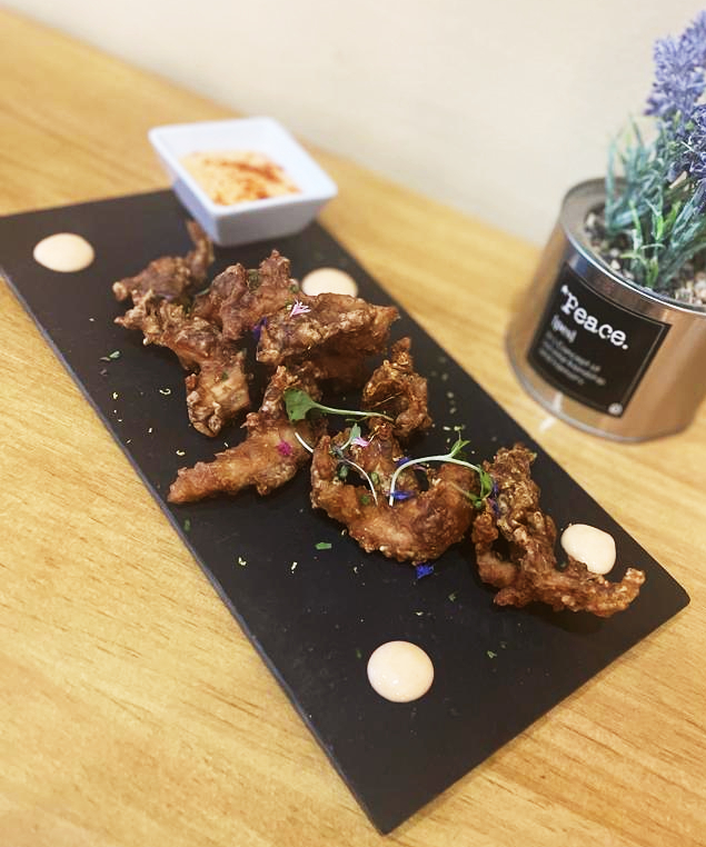 Crunch de pollo en estilo karagee con toque de mayo kimchi
