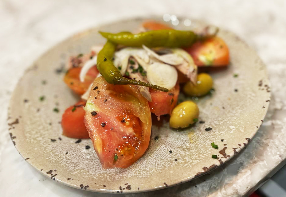 Tomate valenciano, con ventresca y guindilla picante